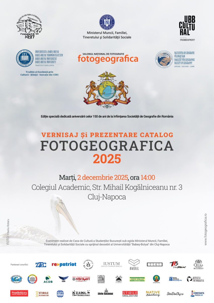 Universitatea Babeș-Bolyai din Cluj-Napoca (UBB) organizează marți, 2 decembrie 2025, de la ora 14:00, vernisajul Salonului Național de Fotografie „FOTOGEOGRAFICA 2025”, găzduit la Colegiul Academic (str. Mihail Kogălniceanu nr. 3).