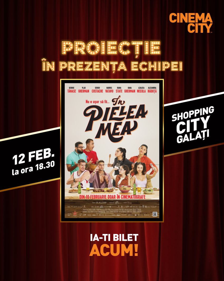 Publicul din Galați este invitat la un eveniment special: proiecția comediei „În pielea mea”, în prezența actrițelor Ioana State și Azaleea Necula și a regizorului Paul Decu, pe 12 februarie. Întâlnirea cu spectatorii Cinema City Shopping City va avea loc de la 18:30, iar proiecția filmului de la ora 19:00.